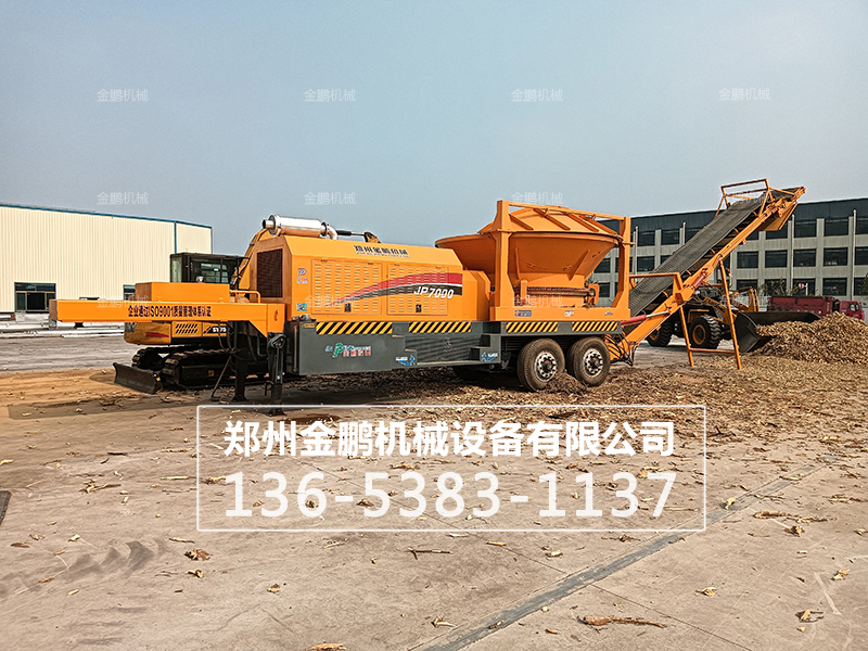 其主要是靠沖擊能來完成破碎生物作業的。錘式大型移動木材破碎機工作時,電機帶動轉子作高速旋轉,生物均勻的進入大型移動木材破碎機腔中,高速回轉的錘頭沖擊、剪切撕裂生物致生物被破碎,同時生物自身的重力作用使生物從高速旋轉的錘頭沖向架體內擋板、篩條,在轉子下部,設有篩板、粉碎生物中小于篩孔尺寸的粒級 通過篩板排出,大于篩孔尺寸的生物阻留在篩板上繼續受到錘子的打擊和研磨。